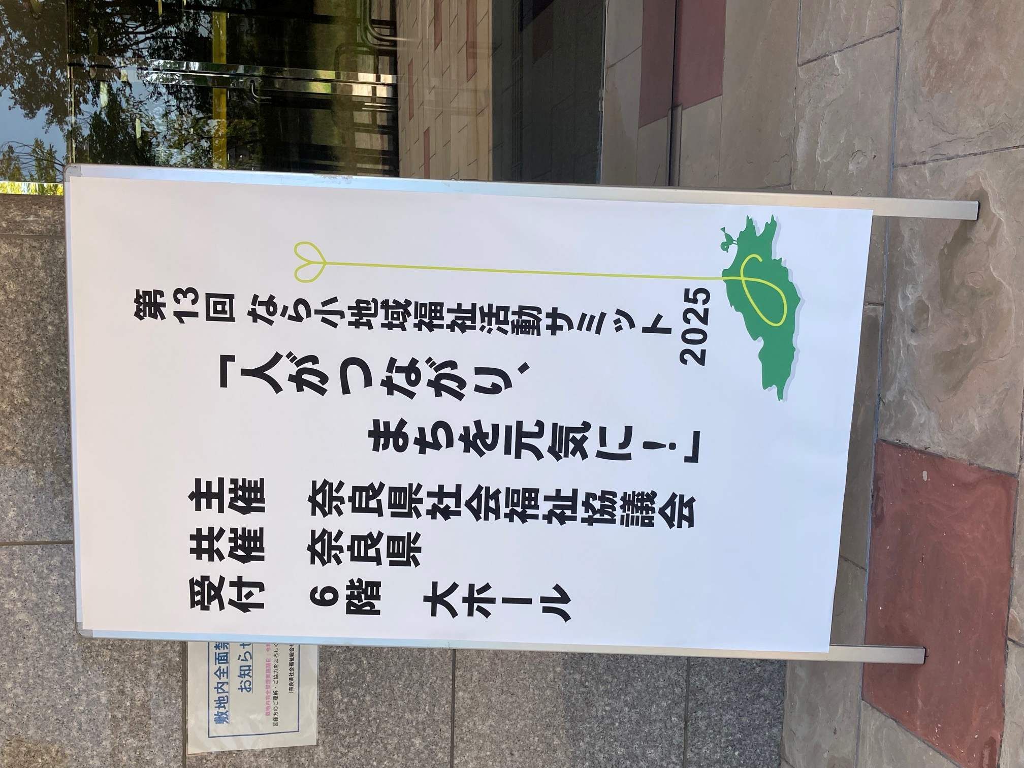 8月30日第13回なら小地域福祉活動サミット2025「未来につなぐ地域づくり」が開催されました。奈良県社会福祉協議会と奈良県生協連とは、奈良防災プラットフォームや奈良こども食堂ネットワーク共同事務局やフードバンク活動などを通じ、特にこの数年接点をもつことが多くなりました。生協も地域福祉に目を向け、従来から進めておられる社協の取組と連携をとる必要性や可能性が広がり、奈良県生協連は毎年参加するようになりました。今年で「なら小地域福祉サミット」は13回目。県内外から地域活動者、自治会関係者、民生児童委員、ボランティア、学生、福祉施設、行政。社協などから300名を超える方が参加されました。