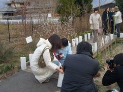 1月13日特別養護老人ホーム「あすなら苑」(大和郡山市)にて、今年12年目を迎える阪神大震災の犠牲者の冥福を祈ろうと、ならコープ組合員サークル「桜(鎮魂)の会」(前田美代子代表)が「桜あかりの集い」を開催しました。苑庭に3本の「鎮魂の桜」が植樹されて今年で2年目を迎え、この日組合員やその家族、施設利用者約70名が参加しました。神戸市で燃え続ける「1.17希望の灯り」からの分灯を桜のもとでロウソクに灯し、震災で亡くなられた方々のご冥福と防災の意識や互助の心が広く育つことを祈りつつ、しめやかに取組まれました。