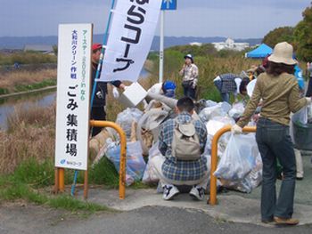 10:00すぎ、大和川河川敷のゴミ拾いに全員で参加、多くのゴミを拾うことが出来ました。大物では、テレビや布団などもあり、モラルの低さに一同びっくり!