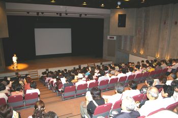 07年7月7日(土)ならまちセンター(奈良市)市民ホールにて表記「日本の青空」上映会をピースアクション実行委員会主催で開催しました。事前申込みで179名の申込みを集約、当日申込み無しでの参加やプレスリリースによるマスコミ広報なども効果的に繋がり、278名の参加で300席の会場はほぼ満席状態になり、反響の大きさに実行委員会でもびっくり!小・中・高・大学生など一定若い世代の参加も見られました。