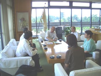 県連からは逸見会長、瀧川副会長、仲宗根専務理事及び事務局増本。ならコープからは新体制でのご挨拶も兼ね、森理事長、辻副理事長、小田専務理事も同席しました。牛肉コロッケ問題については謝罪申し上げるとともに、話題として一連の中国製品問題、表示問題等への関心を示され、食の安全について期待が述べられました。平城遷都1300年を見据えた奈良の特産品の普及や県の取組み、そこへの参画など積極的なご提案などもいただき、知事の県政への強い決意を感じることが出来ました。公務ご多忙な中丁重に対応いただき、なごやかな雰囲気の中で有意義な時間を持つことが出来ました。
