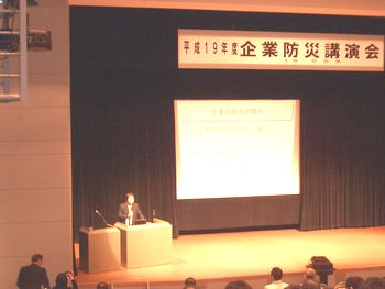 基調講演として「企業における危機管理とBCP(事業継続計画)」をテーマにNPO危機管理対策機構 事務局長細坪信二氏が講演。危機管理と安全管理の違いについてお話があり、震災後の中小企業の現状についても触れながら、想定外のことに対して事前に準備することが危機管理とし、経営的な視点からも災害による業務中断は命取りになる点で、安全管理よりさらに一歩踏み込んだ準備が、企業の存続に関わる重要な課題として、BCPの必要性について参加者も認識を深めました。
