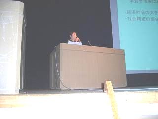 はじめに、同委員会事務局として、堀川幸男 県食品・生活安全課課長より主催者挨拶があり、その後、県食品生活相談センター相談員 谷口直子氏が相談現場の現状から、具体的な被害事例や巧妙化する手口について報告があり、クーリングオフ制度や相談センターへの相談等について紹介するとともに、個人情報の管理の徹底を呼びかけました。