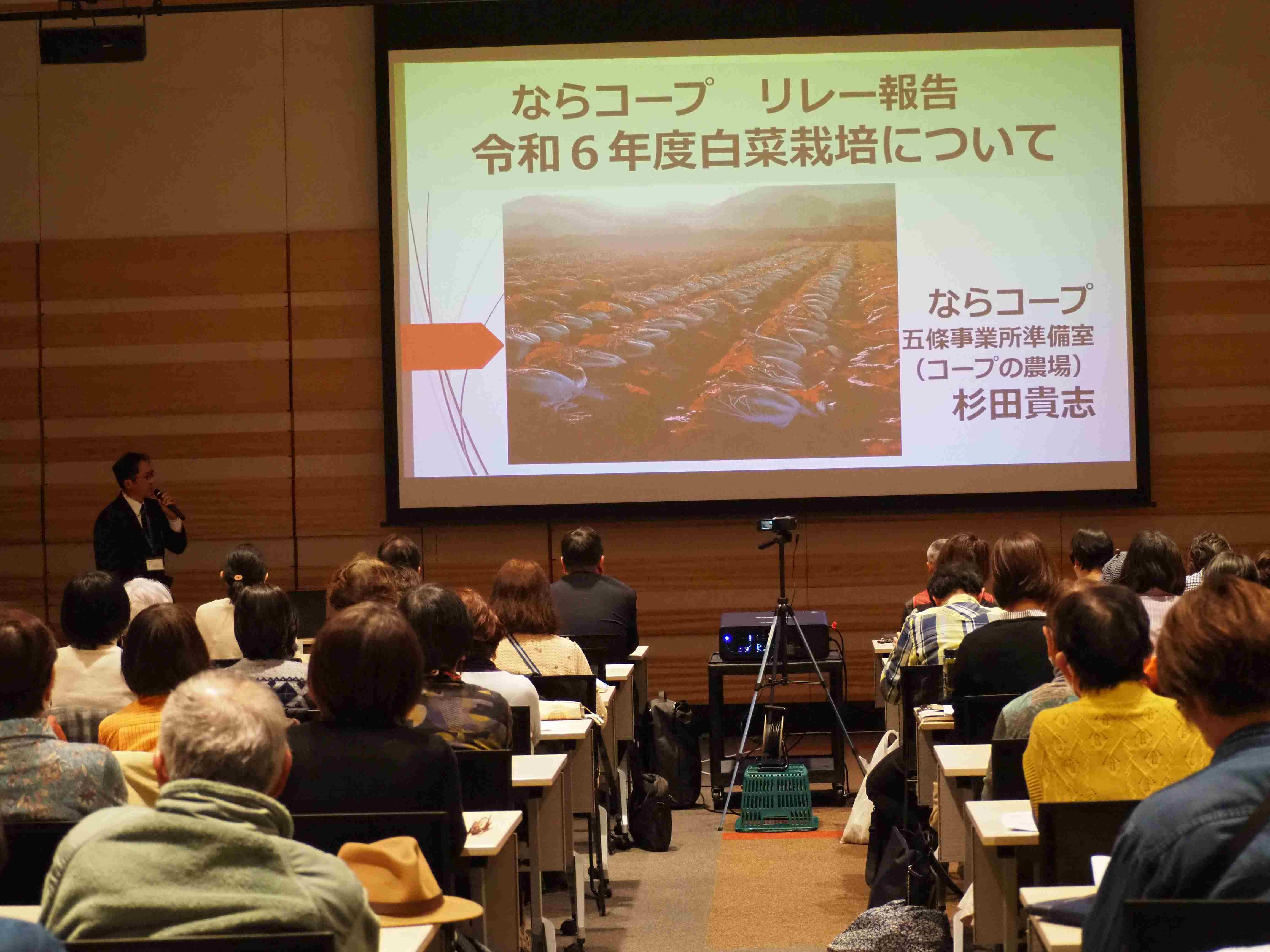 鈴木先生は三重県のご出身。半農半漁で生計を立ててこられたご両親の背中を見て育ち、生産者の立場で農業政策を見てこられたと自己紹介されました。リレー報告では、各生協などから地産地消や自給率を高めるための取り組みの報告がありました。